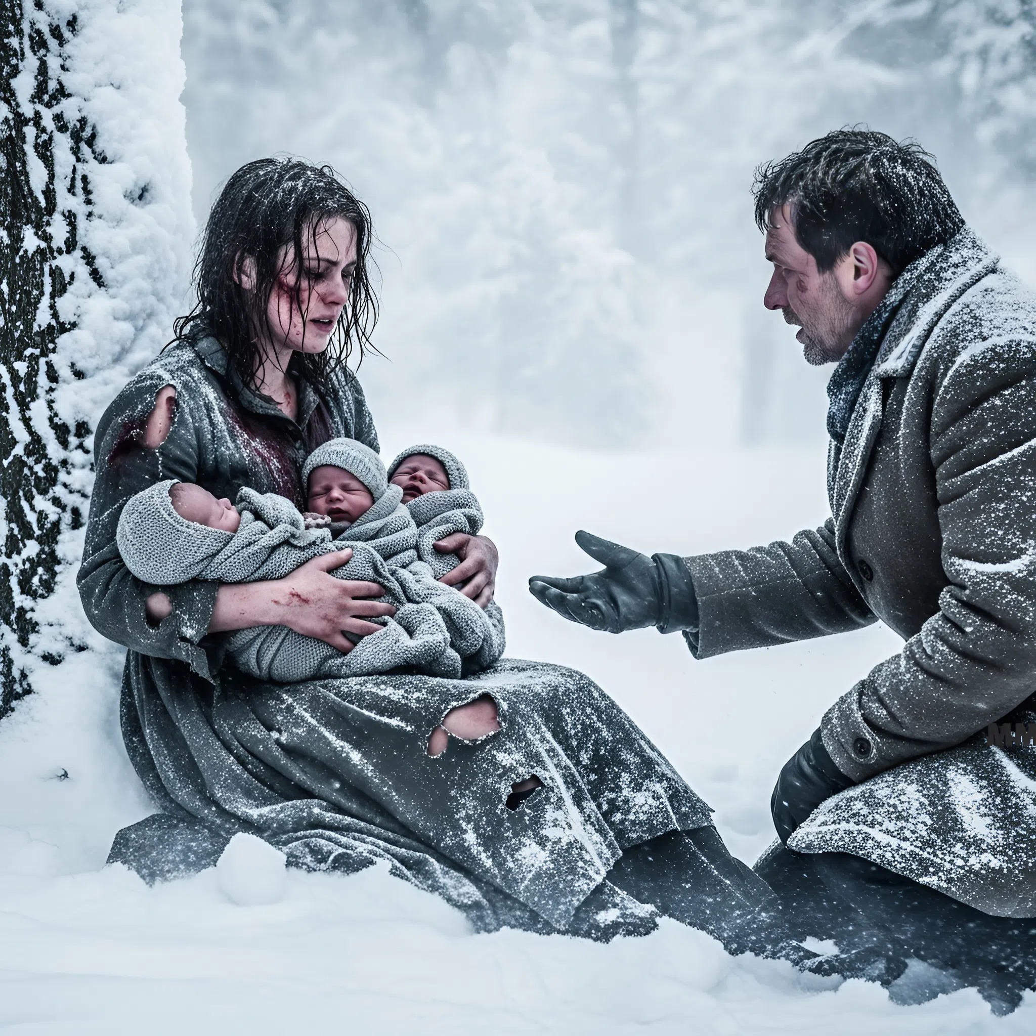 El corazón de Thomas se estremeció al comprender la magnitud de lo que veía: una mujer sola, con tres recién nacidas, perdida en medio de la tormenta.
