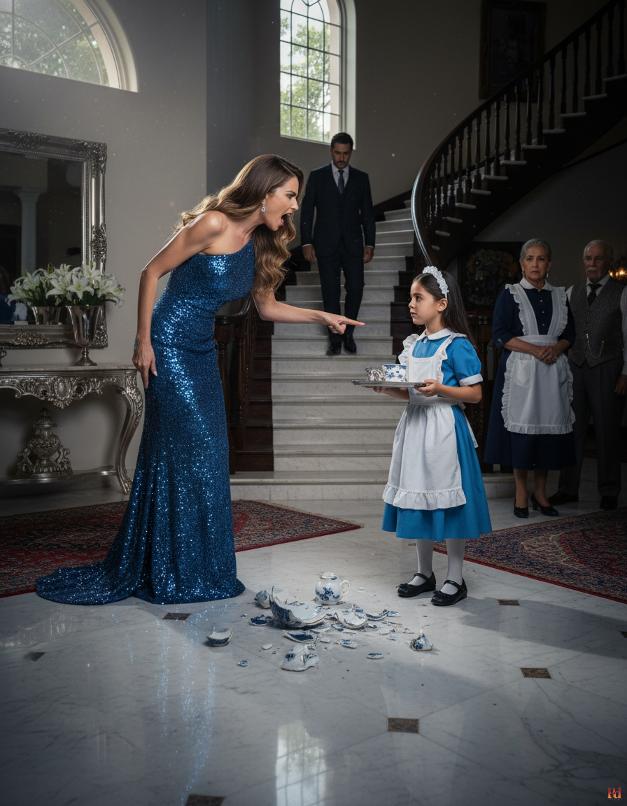 Olivia Hernández, la nueva esposa del magnate mexicano, estaba de pie con un vestido azul brillante que reflejaba la luz del sol filtrándose por los ventanales altos, los ojos encendidos de furia, y la mano aún apoyada en la mejilla de una joven criada con un uniforme impecable azul y blanco. La criada —Isabela Rivera— se estremeció, pero no se apartó.